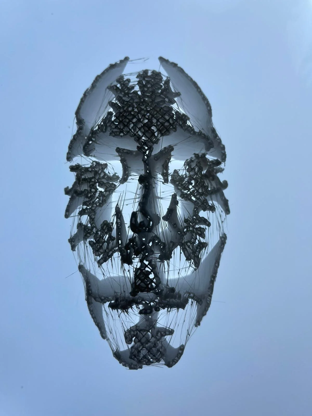 When the mask is printing, support is generated within the model. This support is organic in its construct and creates a skeleton-like representation of the face.