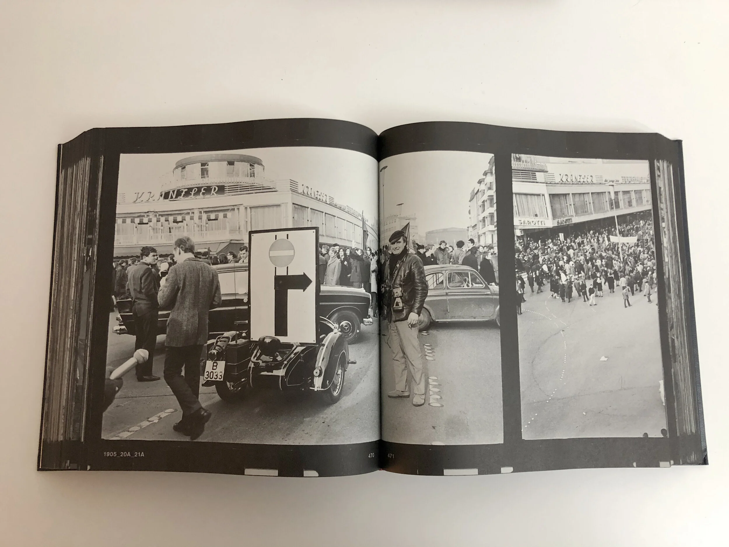 Arwed Messmer's work and the archiving of Berlins Police Historical Collection. This is a fascinating insight into student protests. His book 'Berlin 1966-70' catalogues the images in a chronological order using a film border as a device to add continuity to the presentation. Each chapter is differentiated with a date and a simple line drawing of a map, with the occasional narrative. The paper used in the book is thin with a matt finish. This lends the book to have a feeling of handling a newspaper almost as if the ink will come off onto your hands. As I explore different publications, I am becoming more aware of how important paper is and it's something I will research for my future book.